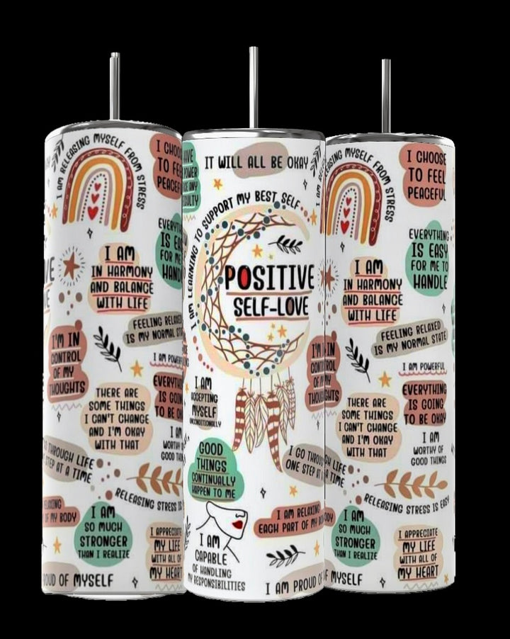 Introducing our Positive Self Love Affirmations Sublimated Tumbler– your daily dose of positivity, wherever you go! This 20oz skinny tumbler features beautiful, high-quality sublimated designs with uplifting affirmations to keep you motivated and centered throughout your day. Each tumbler is crafted with double-wall insulation, keeping your drinks cold for up to 12 hours or hot for up to 6 hours.