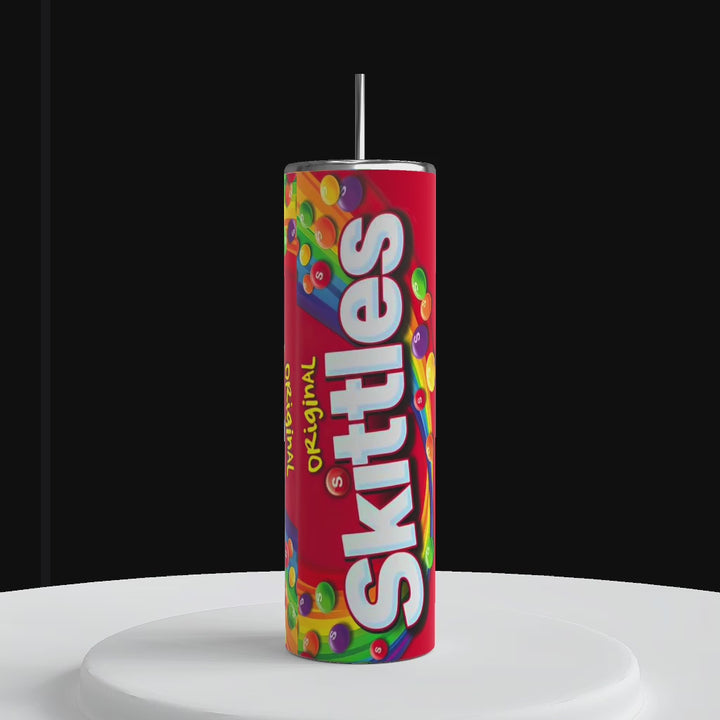 Presentamos nuestro vaso delgado de acero inoxidable Skittles, una adición elegante y con estilo a su colección de bebidas.