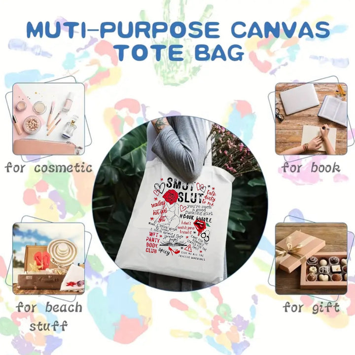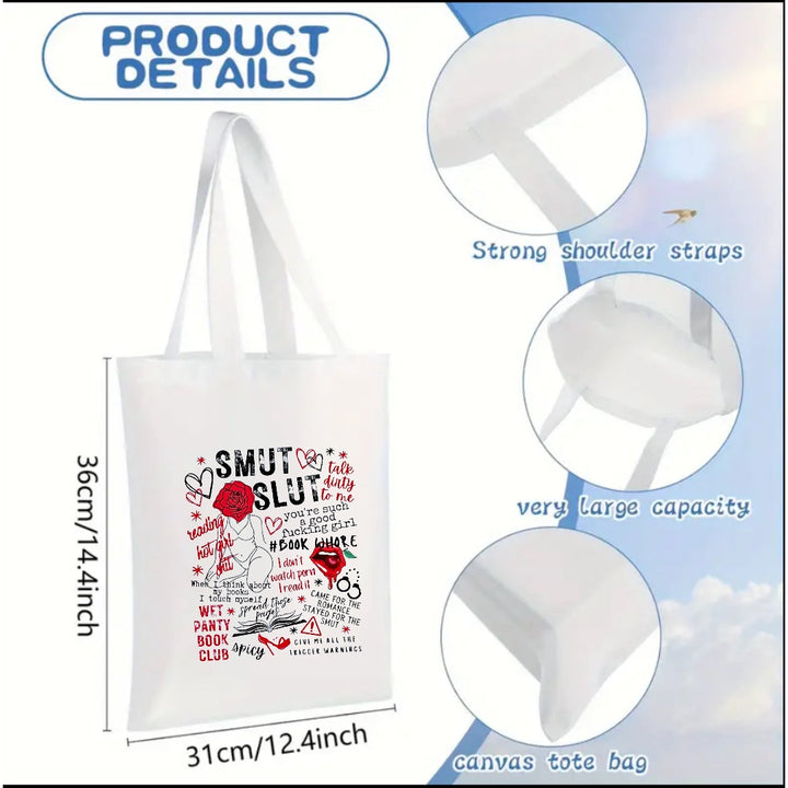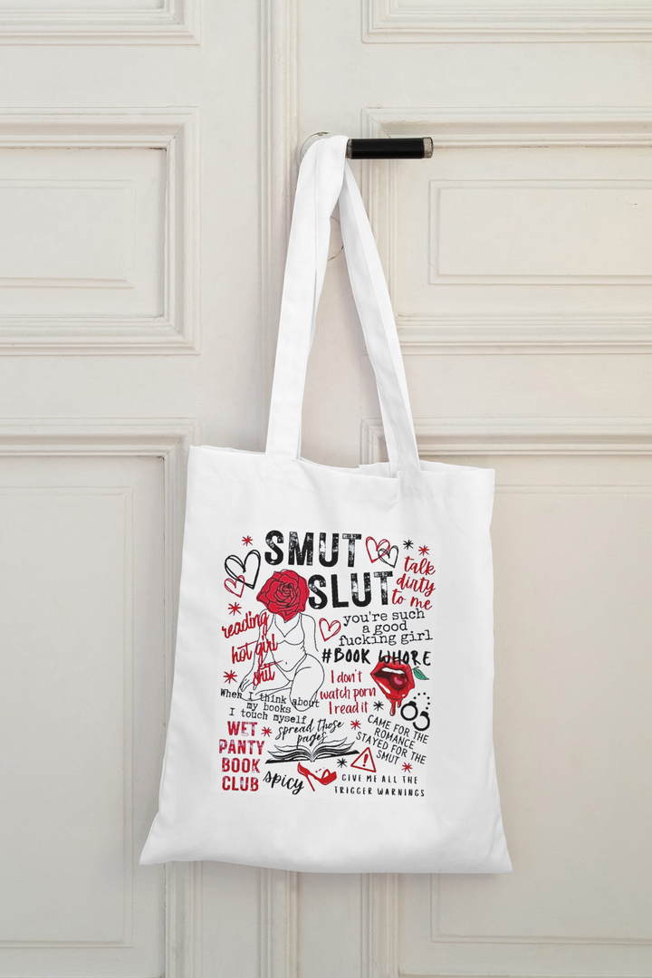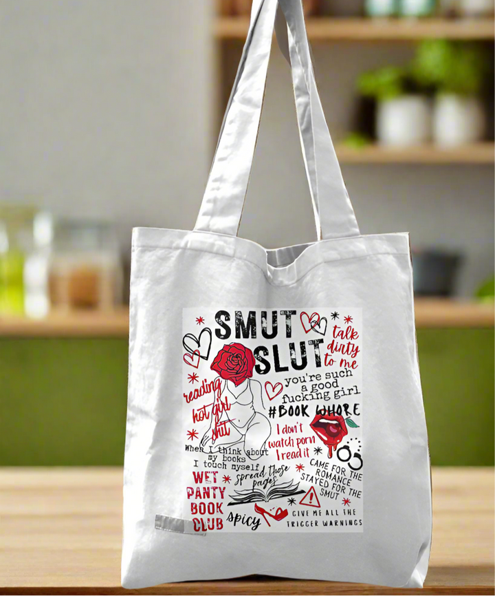 Nuestra bolsa de lona premium Smut Slut es lo suficientemente espaciosa para llevar tus artículos esenciales, como bocadillos, libros o una tableta. Fabricada con material de lona de alta calidad, esta bolsa no solo es resistente y duradera, sino también elegante y ecológica. La correa para el hombro permite llevarla fácilmente.