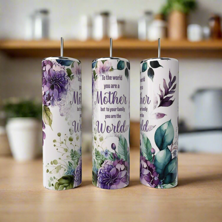 This 20oz stainless steel tumbler is designed to keep drinks hot or cold throughout a moms busy day