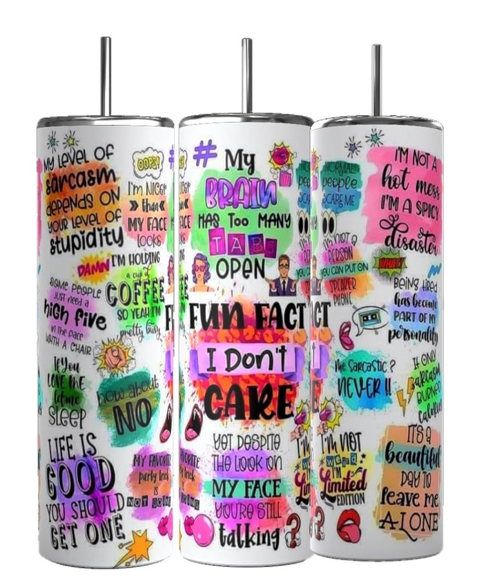 Introducing our Fun Fact Affirmations 20oz Skinny Sublimated Tumbler– your daily dose of positivity, wherever you go!