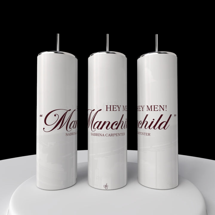Explore the Manchild Sabrina Carpenter Tumbler Collection by Kreative Kreationz—a luxury-inspired, eco-friendly 20oz/592ml stainless steel tumbler with a straight plastic straw and double-walled vacuum insulation for hot or cold drinks.