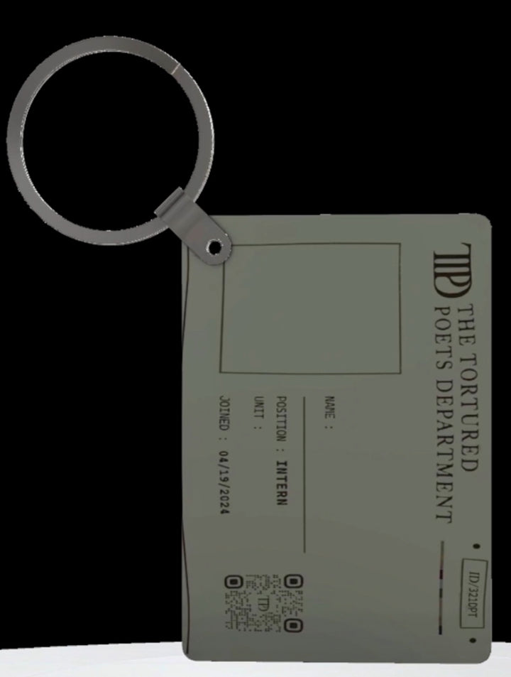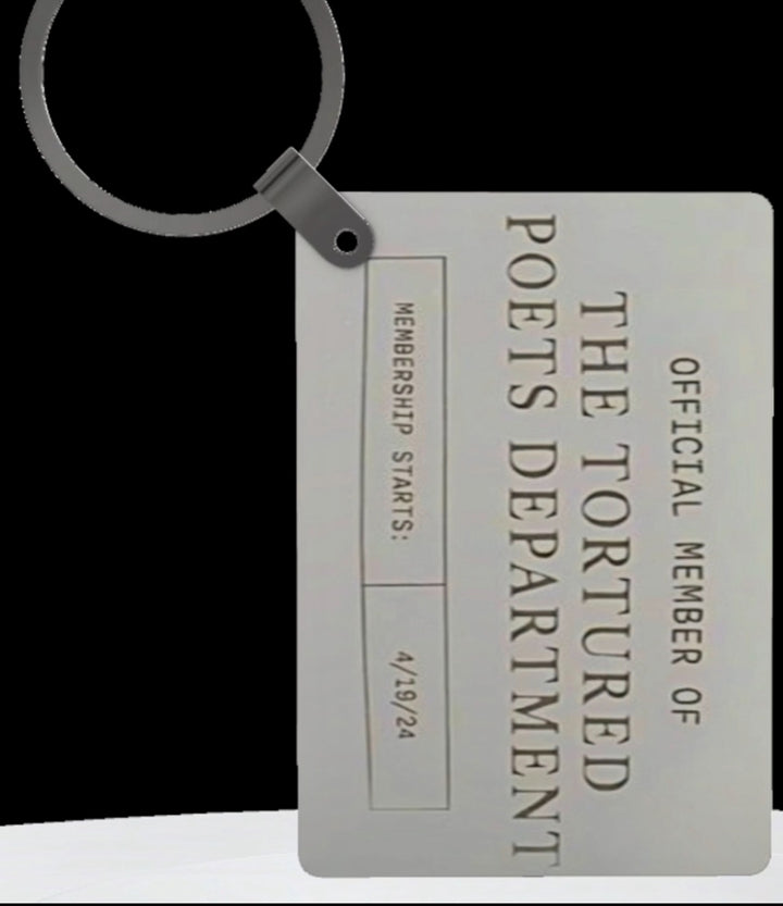 Poetry lovers will adore the Kreative Kreationz Personalized Members Only TTPD Keychain—one side reads "Official Member of The Tortured Poets Department, Membership Starts: 4/19/24," and the other features a custom name and photo ID.