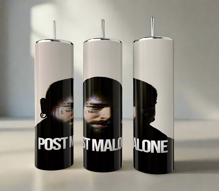 Elevate your style with this luxury-inspired tumbler, designed for those who love to sip in style! This Post Malone 20oz skinny tumbler is perfect for keeping your drinks hot or cold while making a bold fashion statement.