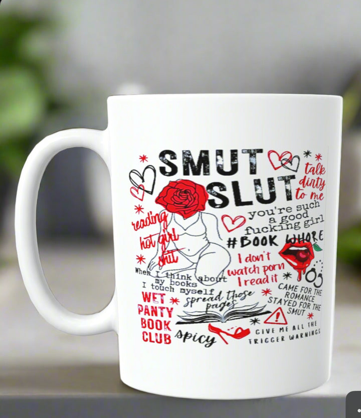 Our Smut Slut mug features a one if a kind mug, with vibrant colors that won't fade over time!